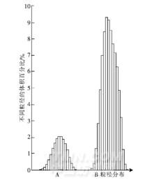 A 區(qū)域.未包覆的乳液粒徑分布范圍(0.07~0.30 μm);