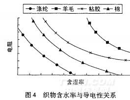 通過測量織物的導電性來測定其含水率是最有效的方法,并可進行即時和連續(xù)測量??椢飳щ娦耘c剩余含水率的關系最為密切,即使是百分之幾含水率的差異,也可以反映出十倍數(shù)量級的導電性能的變化。