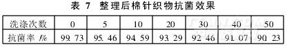 抗菌整理后棉針織物的抗菌效果見表7。