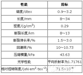 木棉纖維獨特的纖維結(jié)構(gòu)也決定了它不同于其它自然纖維的基本性能。木棉纖維的基本物理性能如表1。
