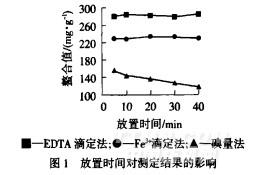 取樣品TF-510,分別按1.4方法測(cè)定,每種方法在滴定前分別放置5、lO、20、30、40 min,結(jié)果見圖1.