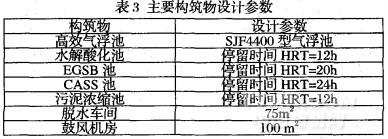 整個工程包括預(yù)處理部分、厭氧部分、好氧部分和污泥處理系統(tǒng)。主要處理構(gòu)筑物及設(shè)計參數(shù)見表3。
