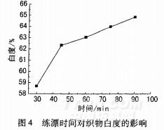 圖4練漂時(shí)間對織物白度的影響