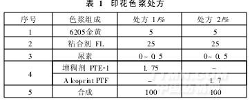 印花色漿處方見(jiàn)表1。