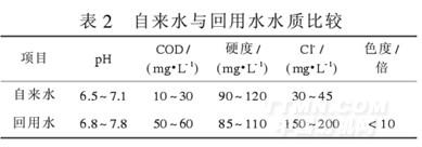 自來(lái)水與回用水水質(zhì)比較見(jiàn)表2。