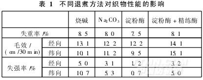 (2)用燒堿處理的織物經(jīng)向毛效比較好,說(shuō)明退煮比較徹底,因?yàn)閴A減量作用,改善了織物的吸濕性。相對(duì)弱堿處理和淀粉酶+精練酶處理,織物緯向的吸濕性要差。這可能是因?yàn)樵陂L(zhǎng)時(shí)間強(qiáng)堿高溫處理?xiàng)l件