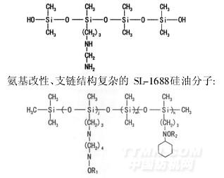 氨基改性且側(cè)鏈結(jié)構(gòu)簡(jiǎn)單的DC-949硅油分子: