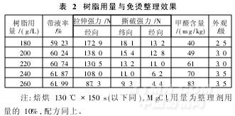綜合考慮織物的外觀、強(qiáng)力、服用性能和經(jīng)濟(jì)因素,樹脂濃度不易過高,因此選擇AP濃度220g/L為較佳工藝處方。