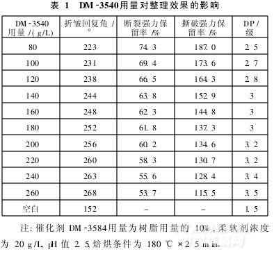 改變DM-3540的用量,其整理效果見表1。