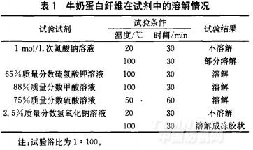 2.1牛奶蛋白纖維在不同試劑中的溶解性能