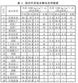 國(guó)內(nèi)外采用厭氧水解池設(shè)計(jì)建立的污水處理廠(chǎng),其水解池的負(fù)荷數(shù)據(jù)列示于表1,以供參考。
