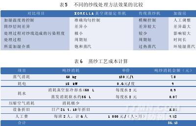 采用XORELLA真空調(diào)濕定形機(jī)與傳統(tǒng)蒸紗機(jī)、加濕房處理紗線的差異如表5所示。