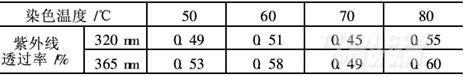 由表3知,染色溫度不同,織物的紫外線透過率有所不同,但變化很小,說明染色溫度變化對織物的防紫外線效果影響不大。