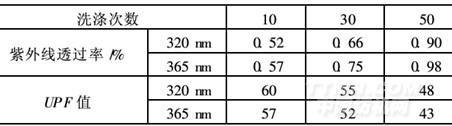 采用染料0.5%、元明粉15g/L、純堿10g/L、防紫外線整理劑UV-1201.0%,按上述工藝流程對織物進(jìn)行處理,進(jìn)行防紫外線效果耐洗性測試,結(jié)果見表5。