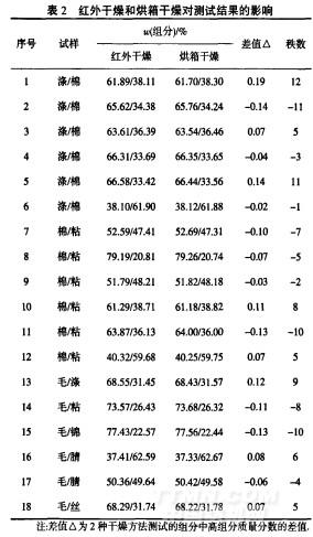 2.2紅外干燥與烘箱干燥對(duì)測(cè)試結(jié)果的影響