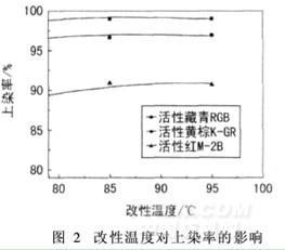 (2)改性溫度對上染率的影響