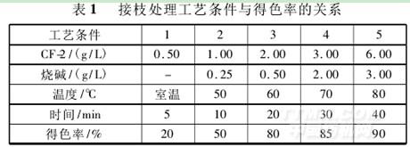 接枝處理工藝條件對紗線得色率的影響見表1。