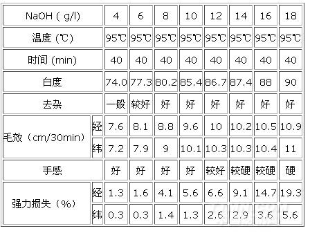 本次實(shí)驗(yàn)在退漿工序我們做了酶退漿、新型低堿煮練劑DKB(宜興新建助劑二廠)退漿與純堿退漿對(duì)比實(shí)驗(yàn)。