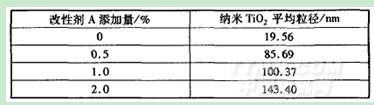 表1不同改性劑添加量分散制備的納米"rio平均晶粒尺寸