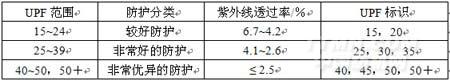 表1澳大利亞/新西蘭標準確定的UPF數(shù)值及防護等級