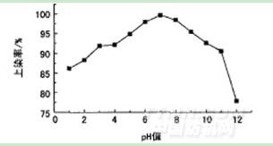 圖4中,染浴pH值為7時(shí),上染率最高。