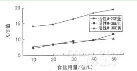 圖1 食鹽用量對(duì)K/S值的影響
