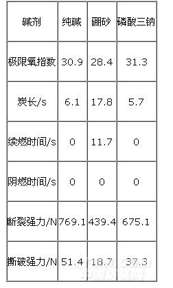 傷最為嚴(yán)重,這與體系中有硼砂和水解產(chǎn)生的硼酸的存在密切相關(guān),高溫焙烘時(shí)會(huì)導(dǎo)致纖維 的嚴(yán)重?fù)p傷。而磷酸三鈉調(diào) pH 時(shí)阻燃性能有略微的提高,這跟磷酸三鈉本身具有一定的阻 燃性有關(guān),但其強(qiáng)力損失也較純堿更為嚴(yán)重。由此可見(jiàn),選用純堿調(diào)節(jié) pH 最為合適。