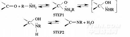 采用高碘酸鈉氧化竹原纖維素,可切斷纖維素葡萄糖基環(huán)上的C2-C3化學(xué)鍵,竹原纖維葡萄糖環(huán)C2、C3位上的C—OH被氧化成了c=0,竹原纖維被高碘酸鈉選擇性氧化成2,3一二醛基纖維素.且二醛基纖維素上的醛基隨著氧化程度的加深而不斷增多,氧化后纖維素大分子中的羥基及氫鍵結(jié)構(gòu)逐漸減少.選擇性氧化生成的醛基活性很大,具有與絲膠蛋白分子鏈中氨基形成共價結(jié)合的能力.絲膠蛋白與氧化竹原纖維間的席夫堿反應(yīng)分2步,通常第一步反應(yīng)容易進(jìn)行,即絲膠蛋白中的氨基與氧化纖維素上的醛基形成亞胺結(jié)構(gòu)(c—N),而第二步的C=N結(jié)構(gòu)要經(jīng)過還原等處理才能得到.其反應(yīng)原理如下: