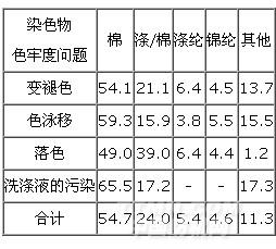 表一 主要染色物發(fā)生的變褪色和落色等色牢度問題的比例(單位:%)
