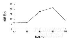 圖2溶解溫度與羊毛角蛋白制得率的關(guān)系