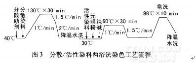 滌棉織物分散/活性染料兩浴法染色工藝流程見(jiàn)圖3。