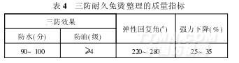 ( 1) 三防耐久免燙漂白織物應(yīng)注意織物白度和黃變現(xiàn)象 , 在生產(chǎn)過程中要控制好溫度和時(shí)間 , 以免白度下降 , 發(fā)生黃變。同時(shí) , 應(yīng)注重坯布質(zhì)量檢驗(yàn) , 要求三絲達(dá)標(biāo) ; 尤其是美標(biāo) 4 分制的訂單 , 更要嚴(yán)格檢驗(yàn) , 必要時(shí)要提前修除三絲后再進(jìn)行加工生產(chǎn)。