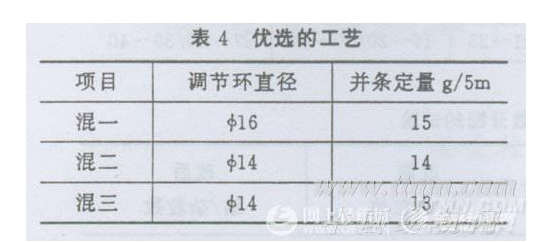 由試驗結(jié)果看,隨著車速低棉結(jié)粒也隨之降低,這是因為車速低可使纖維與金屬間的動摩擦系數(shù)降低,減少纏花,減少羅拉與纖維間的相對滑動而形成棉結(jié)。在保證生產(chǎn)供應的前題下,各混并下調(diào)一檔速度。