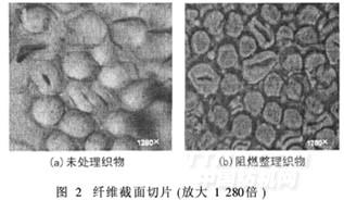 1. 3. 5節(jié)方法對纖維截面切片進(jìn)行拍照,結(jié)果見圖2。