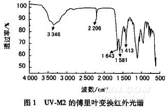 吸收峰(v),1581cm、1413cm處的吸收峰為芳環(huán)的骨架振動(v),符合uV.M2的結(jié)構(gòu)特征。