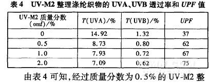 2.4 UV-M2改善滌綸織物的紫外防護(hù)性能