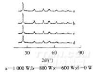 Ce/TiO2的微波改性:在快速紗線定型機(jī)中用不同功率微波分別處理Ce/TiO2粉末.