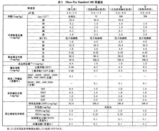 該標(biāo)準(zhǔn)于2011年1月1日再次更新,部分功能紡織品可能及的化學(xué)物質(zhì)限制見表2…。值得注意的是,基于REACH法已將短鏈氯化石蠟(C10一C13)和三(2.氯乙基)磷酸酯列人SVHC候選清單的考慮,新標(biāo)準(zhǔn)也將這兩種物質(zhì)列人了禁用阻燃物質(zhì)清單和其它禁用的(殘留)化學(xué)品清單。同時(shí),總鉛含量均調(diào)整為90mg/kg,這一指標(biāo)嚴(yán)于美國CPSIA規(guī)定的300mg/kg的限值,也嚴(yán)于其可能于2011年8月實(shí)施的100mg/kg的限值,這些修訂對希望符合該標(biāo)準(zhǔn)的功能紡織品提出了新要求。