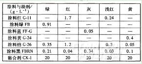 采用2#面料進(jìn)行涂料印花,處方見(jiàn)表3(以花版號(hào)3022一P為例)。