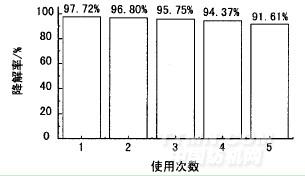 圖7為納米TiO2負載薄膜多次使用后的降解效果。
