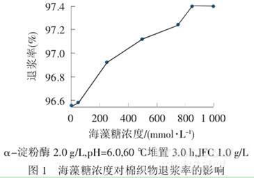 材料:15/15 tex 524/283 根/10 cm 純棉坯布,主要為淀粉上漿(無錫針織總廠),α-淀粉酶(上??档囟鞴?,海藻糖(分析純).