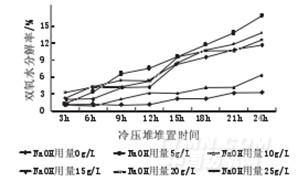 冷壓堆工藝的溫度為冬季室溫(約18℃左右),氫氧化鈉用量為15g/L。實(shí)驗(yàn)結(jié)果如圖2-3所示: