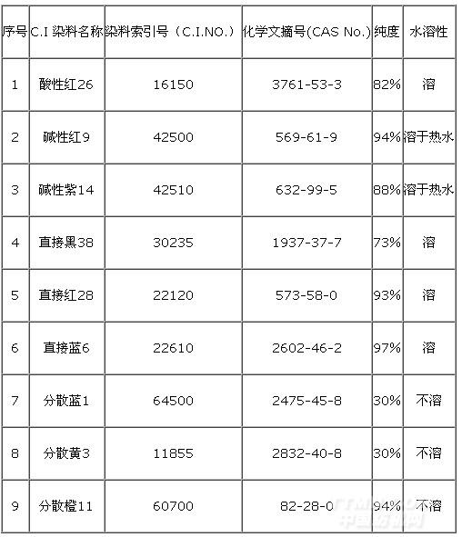 表1 9種致癌染料