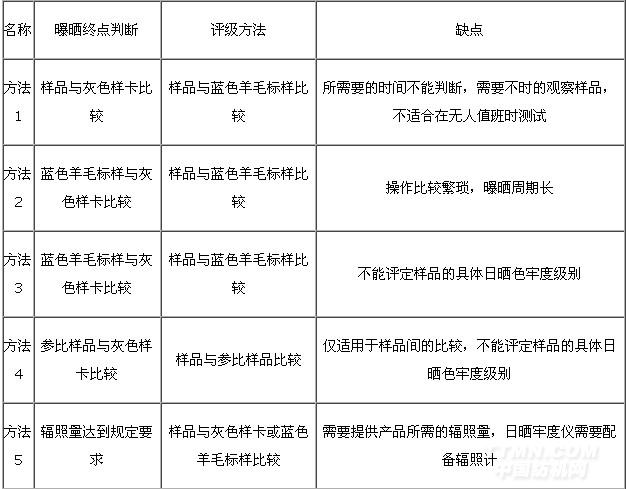 表1 標(biāo)準(zhǔn)曝曬方法特點