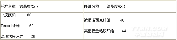 Tencel纖維與其他纖維素纖維的結(jié)晶度比較如表2-3所示