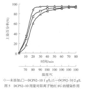 (2)陽(yáng)離子Bola型表面活性劑對(duì)陽(yáng)離子染料具有顯著的緩染作用,陽(yáng)離子Bola型表面活性劑用量越大對(duì)陽(yáng)離子染料的緩染作用越明顯,并不影響其最終上染量,可作為一種新型的緩染劑應(yīng)用于腈綸纖維染色.