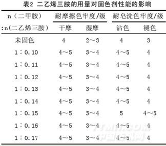 2.1.2二乙烯三胺的用量對(duì)固色劑性能的影響