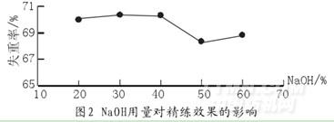 由圖2可得出結(jié)論,當(dāng)NaOH的用量為30%(omf)時,失重率最大為70.30%。可以獲得最佳的處理效果。