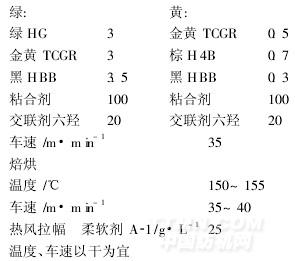 (3)為保證印花工藝穩(wěn)定,以達(dá)到花型效果,適當(dāng)提高焙烘工藝條件,使色牢度更好。
