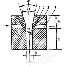 a-噴嘴進(jìn)口收縮角 B-噴嘴進(jìn)口寬度 b-噴嘴出口寬度 d-噴射狹縫寬度 h-噴射口至進(jìn)口的高度 H-噴射口至出口的高度